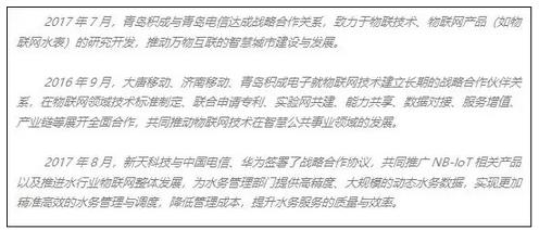 双方的合作形式呈多元化,最常见的是加快某一特定技术的应用或水表的部署,更为深入的还有编制“智慧水务数据采集及通讯协议”相关标准、成立产学研联合实验室、搭建公共资源与数据应用平台等,以扩大影响力,朝着行业标杆的方向努力,同时营造更好的产业环境。